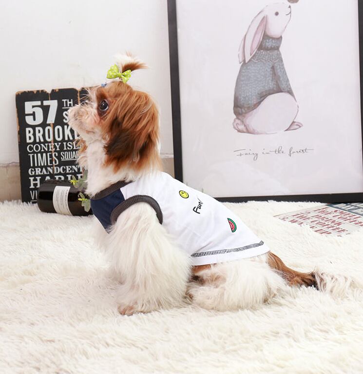 刺繍のポイントが可愛い!ワンカラーですが、わんちゃんの種類や色に関係なく似合うホワイトカラー。もうだんだん暖かくなる季節にぴったりな袖なし!いかがですか?